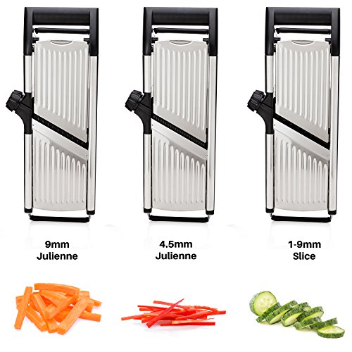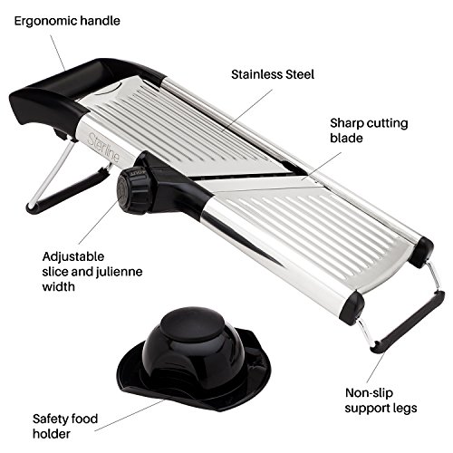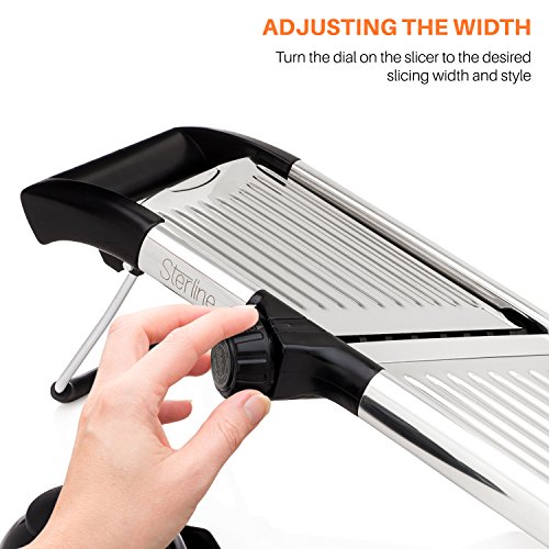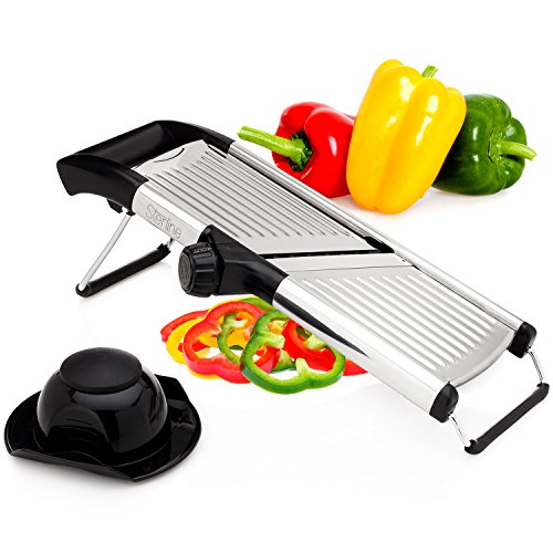 Sterline Adjustable Stainless Steel Mandoline Slicer with Hand Guard Food Holder, Vegetable Slicer, French Fry Cutter, Julienne Blade, BPA Free, Dishwasher Safe