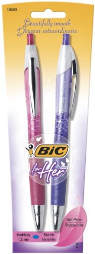 -. Title : BIC For Her Retractable Ball Pen, Medium Point, 1.0 mm, Blue Ink, 2 Count (FHAP21-Blue)