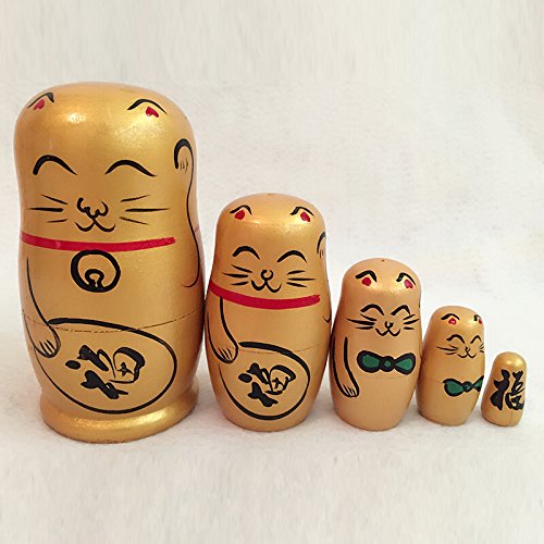 -. Title : MODEBESO(TM) 5PCS Handmade Gold Color Lucky Cat Matryoshka Russian Doll Nesting Dolls Cutie Lovely Christmas Birthday Gifts Toy Perfect Mother's Day Gift