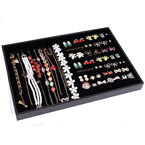 -. Title : Homanda Black Velvet 12 Compartment Jewelry Display Showcase Organizer Holder