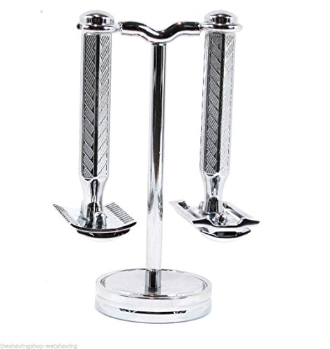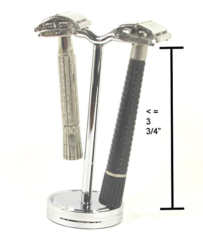 Studio : PSI Publisher : PSI Binding : Health and Beauty Product Description New, chrome stand with two cradles for two razors. Total stand height: 4.25". Opening for razor is 3/8" this stand will hold a razor with a handle length of 3 3/4" or less. Attached to a 3/4" round base. Razors in image are NOT INCLUDED. Made in Taiwan. FAST shipping, delivery in 2-3 days. 0