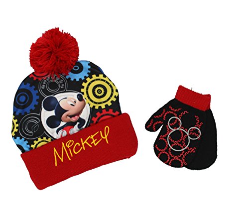 Binding : Apparel Product Description Bundle up with Mickey Mouse in this hat and mitten set! This Mickey knit hat and mitten set features your favorite lovable mouse, Mickey! Choose your favorite style: knit laplander with fleece lining and 3D ears or sublimated style with knit lining and pom pom on top! The perfect outerwear choice for any Disney Mickey Mouse Clubhouse fan! 0
