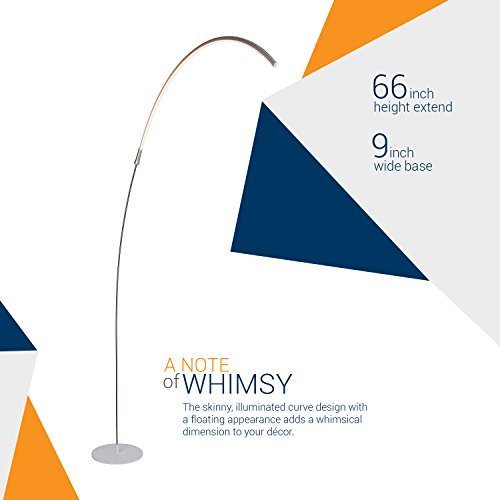 BEAUTIFUL BRIGHT LIGHT TO ENLIVEN YOUR SPACE: The illuminated, thin curved design of this lamp has a floating appearance and its lean frame bends over your sofa, desk, work bench, or crafting table in an arc of light. The 3,000 Kelvin color temperature and 2,000 lumens of this lamp make it bright enough for reading or working yet it is still easy on sensitive eyes. The Sparq Arc Floor Lamp will surround you with warm white light to comfortably illuminate any part of your home or office.