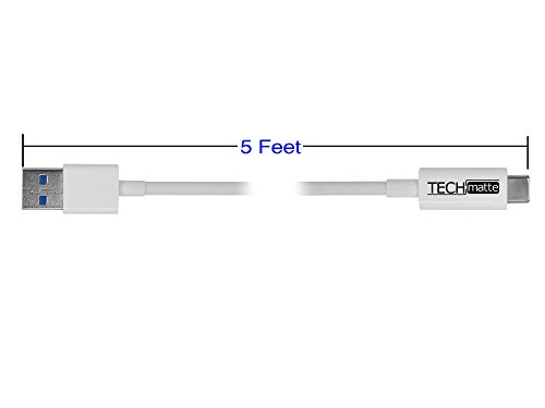 USB Type C Cable (5FT), TechMatte USB 3.0 Type C to Type A (USB-C to USB) Cable for Galaxy S8, Google Pixel, Pixel XL, OnePlus 3, HTC 10, Nexus 5X, 6P, LG G5 (5 Feet, White)