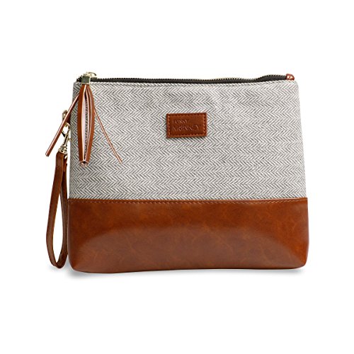 Wristlet Wallet Clutch Bag {Greta-Large} Phone Purse Handbag Gray White Herringbone Funky Monkey Fashion