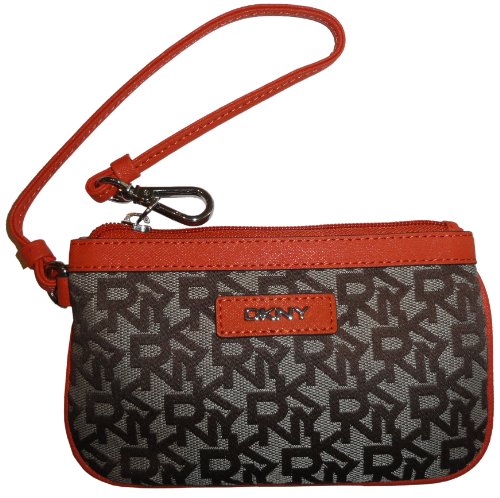 DKNY Women's T&C Logo Plaque Wristlet with Saffiano Leather Trim Chino/Orange