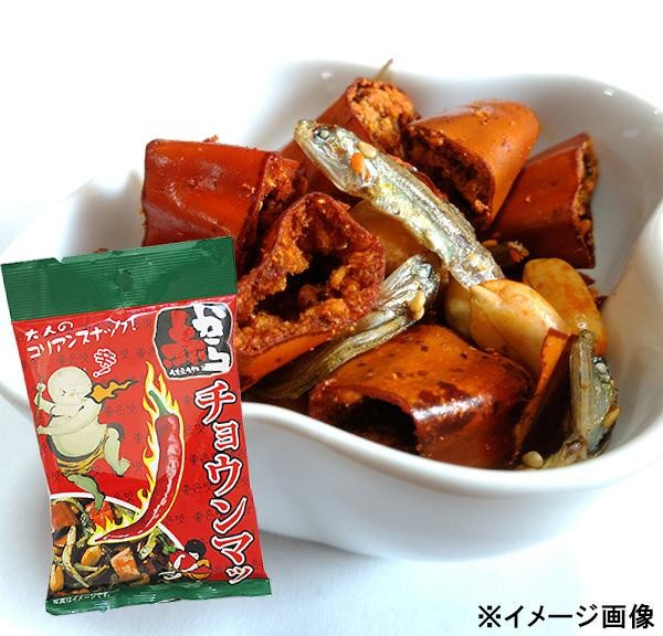 | 原材料 | 名称:菓子 【チョ ウンマッ プレーン(微辛)】 唐辛子、ピーナッツ、トウモロコシ澱粉、植物油、胡麻、砂糖、塩、調味料 (アミノ酸等)、膨張剤 【赤から チョ ウンマッ いりこ入り】 ピーナッツ、唐辛子、片口イワシ、トウモロコシ澱粉、植物油脂、砂糖、胡麻、塩、調味料(アミノ酸等)、膨張剤、醤油、みりん |