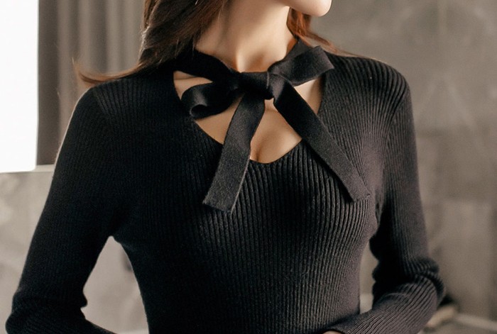 商品名:ワンピース 無地 長袖 膝丈