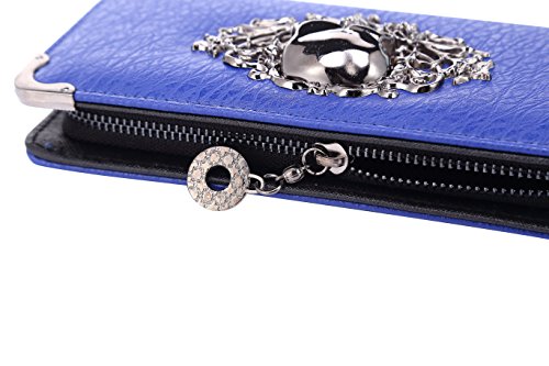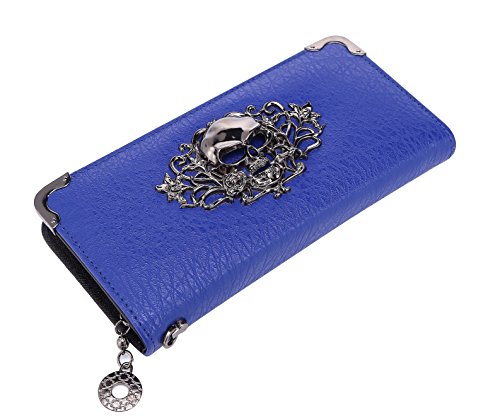 Specifications: Type: Wallet Main Material: PU Leather Metal Lining Material: Polyester Size: 21*10*3 cm/8.3*3.9*1.2 inches (Approx.) Closure Type: Zipper Gender: Women Embellishment: Skull 0