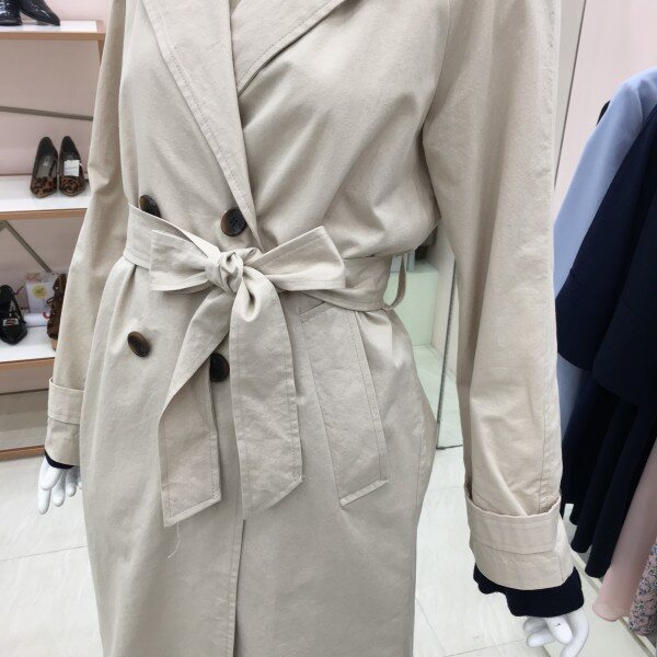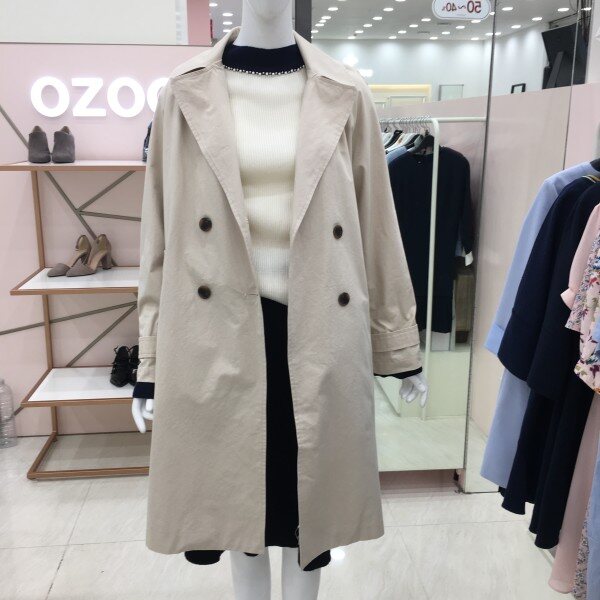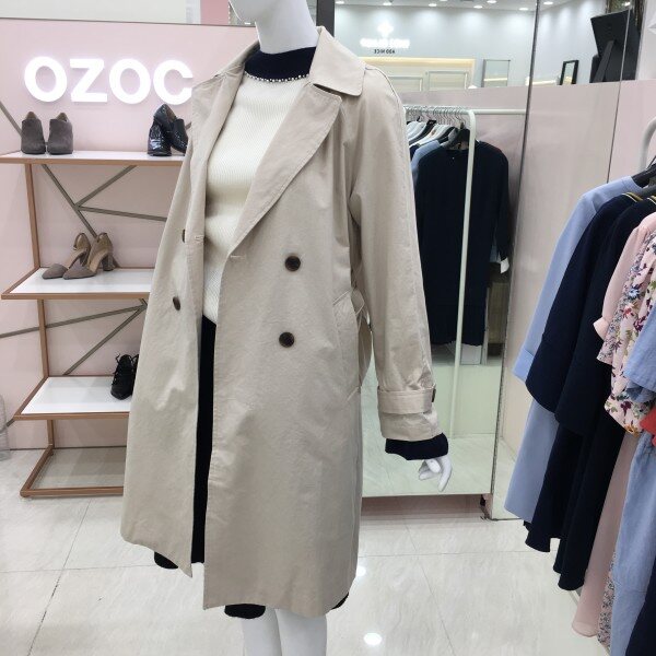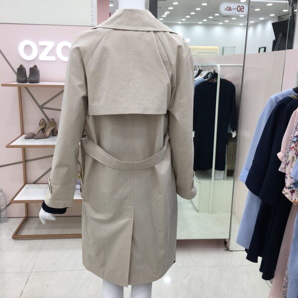 베이직한 디자인의 트렌치 코트입니다.안감없는 홑겹으로 간절기에 가볍게 걸치기 좋습니다.