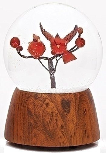 ROMAN MUSICAL LET IT SNOW CARDINAL CHRISTMAS SNOW GOOBE WITH TREE INSPIRED BASE