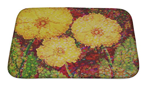 Gear New Acrylic Hand Drawn Design with Three Yellow Flowers Bath Rug Mat No Slip Microfiber Memory Foam