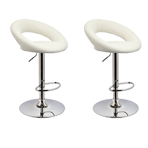 -. Brand : Duhome Elegant Lifestyle -. Feature : Crescent Swivel Leatherette Upholstered Cushion Seat Bar Stools with Chrome Finish Footrest and Pedestal, Set of 2 / Modern design that fits perfectly in kitchen and bar. Not only is it appealing with it's clear lines and simplistic design, it is also sturdy and comfortable. / SEAT OF QUALITY SYNTHETIC LEATHER (PU) - Durable and easy to maintain. # 360 DEGREE ROTARY / Seat height min-max: 23.5 - 30.5 in # Overall WidthxDepthxHeight: 21.5 x 19 x 38 in # Seat: 21 x 19 in # Height of Backrest : 8.5 in -. ProductGroup : Furniture -. ProductTypeName : HOME_FURNITURE_AND_DECOR -. Title : Bar Stool Set of 2 WY-171B Crescent Adjustable Bar Stools with Faux Leather Seat Duhome