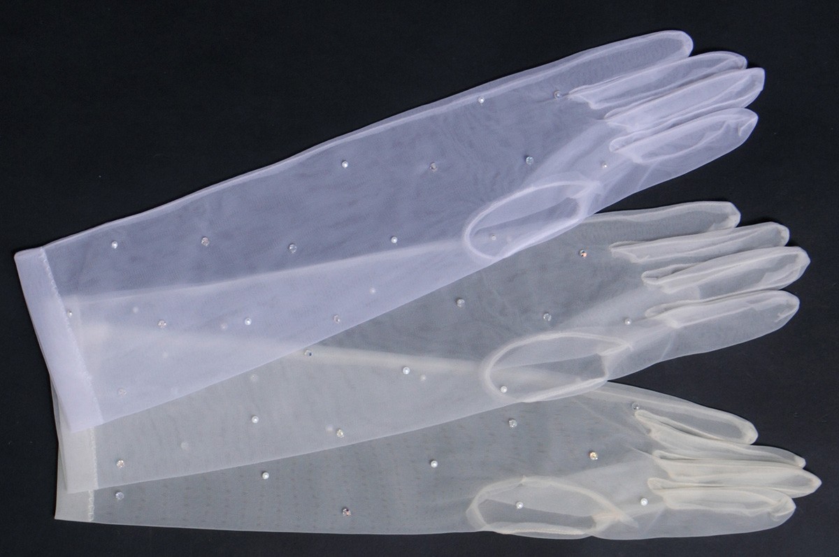 お肌がうっすら透けて、お手元をより上品にみせてくれる光沢のないオーガンジーのグローブです。