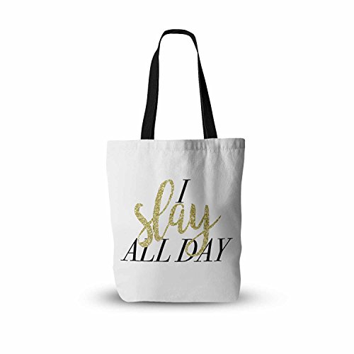 KESS InHouse Chelsea Victoria "I Slay All Day" Gold Black Mixed Media Everything Tote Bag, 13" x 13", Multicolor