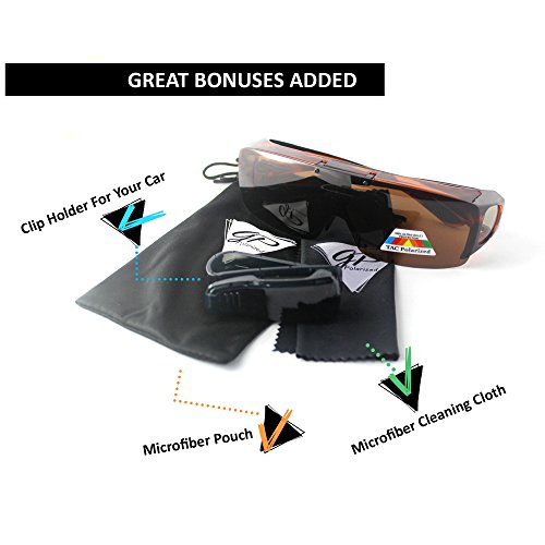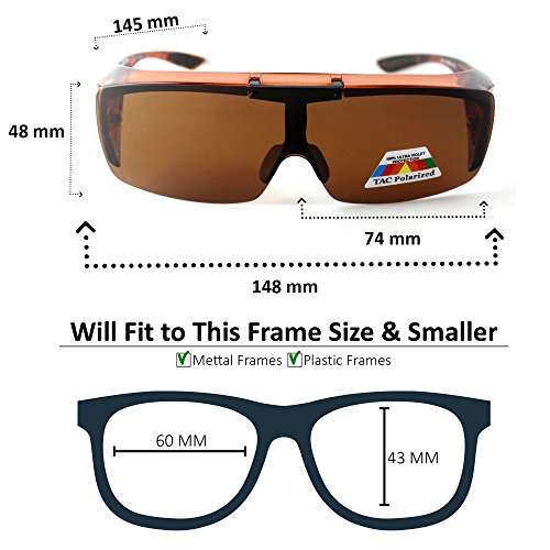 ☑️SAVE THE BUY OF NEW EXPENSIVE PRESCRIPTION SUNGLASSES: With the GREAT PICK FIT OVER FLIP UP POLARIZEDSUNGLASSES .You can put them over most large prescription glasses flip them up or take them off instantly . Included a microfiber drawstring pouch, soft cleaning cloth & special car clip holder to keep safe of your sunglasses or eyeglasses in the car.
