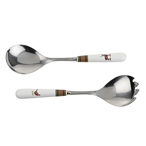 - Made of porcelain handles and steel. Set of 2 salad servers.