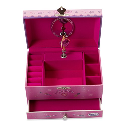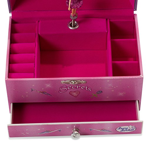 Princess Kids Musical Jewelry Box - Hot Pink Glittery Kids Music Box With Ring Holder - Lucy Locket