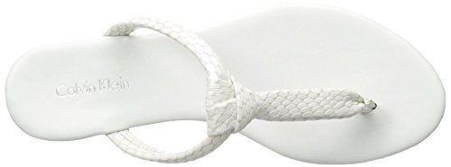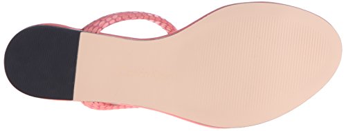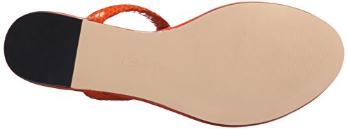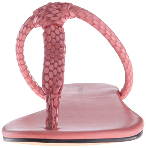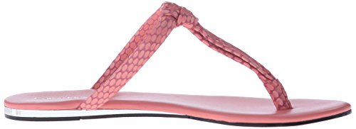 Thong sandal featuring snake-embossed leather straps and metallic sliver wedge