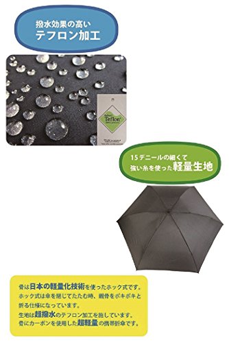-. Title : 超軽量110g 軽くて強いカーボン骨×撥水効果の高いデュポン社のテフロン加工生地使用 55cm 3段式 折りたたみ ミニ傘 (黒)