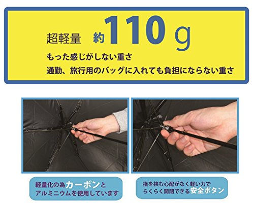 -. Feature : カラー:黒 親骨:55cm×6本骨 / 生地:ポリエステル100% / 骨素材:親骨-アルミ+カーボン 受骨-カーボン 中棒-アルミ / 全長:約51cm 収縮時:約22.5cm 開いた時の直径:約96.5cm / 重量:約110g