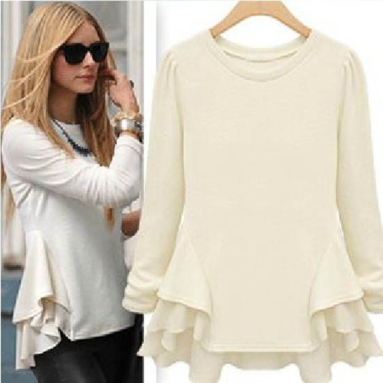 【入荷後営業日2,3日以内出荷予定 通関待ちや不良により出荷遅くなる場合はメールにてご連絡いたします。メール受信設定によっては正常に受信されない場合はございますので、 弊社からのメールを予め受信頂くようご設定くださいませ。】 トップス Tシャツ カットソー フリル 斜めフリル チュニック 長袖 無地 レディス レディース 春 新作 2018後長丈フリル裾Aラインチュニック◆サイズ:着丈65-69胸囲88(XL)◆素材:コットン65%+ポリエステル35%