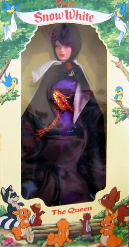 -. Feature : Disney's Snow White The Queen Doll is The Walt Disney Company & Biken Express Ltd USA Corporation production. / Includes: 11.5" Queen Doll with green eyes (can't tell hair color; wears hood). Doll wears long black Cape w/high white collar, purple tones Gown w/red & gold tie belt at waist, a black Hood, gold crown & purple Shoes; Comes with Doll Stand for Display! / I believe the Biken Disney Dolls were produced in 1980's. / For Ages 3+ Years. Sizes, styles, colors & info may vary. / Doll attached to cardboard back; does not appear to be used. Minor shelf wear; See CONDITION NOTE for Box Condition. Great for any collection, as a gift or for fun play!