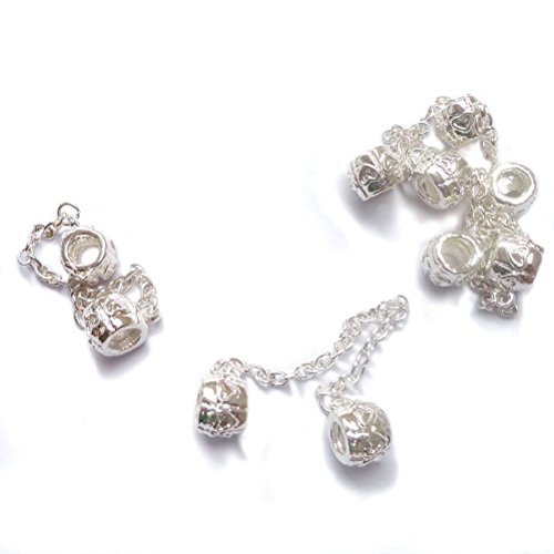 NUOLUX 5Pcs Silver Euro Stopper Safety Chains Stop Beads Euro Charm Bracelets (Sliver)