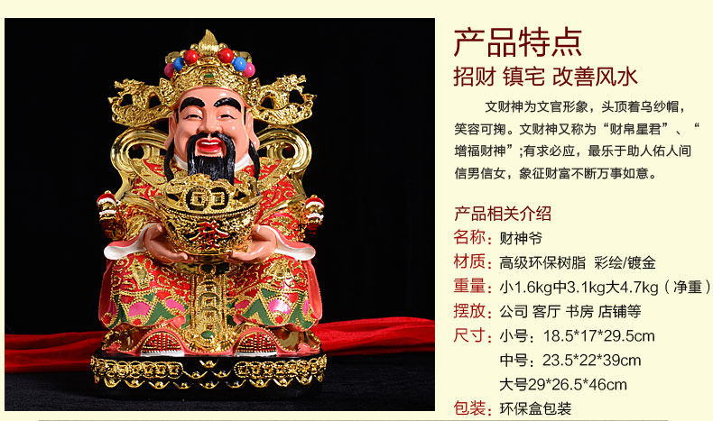 招财文财神爷摆件大号佛像乔迁新居开业礼品家居风水吉祥物