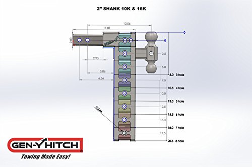 Drop Hitch by Geny #525 16,000 Lb 10" Drop Raise Hitch 2" Receiver Hitch, Dual-ball Pintle Combo Hitch