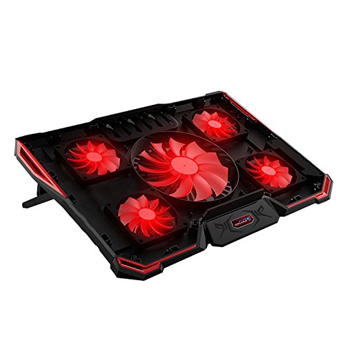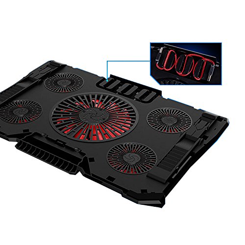 -. Feature : 5 Built-in Silent fans (big fan: 5.9", small fans: 2.76") with LEDs, two led/fan switches to control the 5 fans and LEDs simultaneously. / The fans rapid cooling effect prevents your laptop from overheating and is perfect for gaming. / All 5 fans are stealth silent so it doesn't interfere with any of your laptop audio while watching movies or playing games. / Ergonomic bottom mount stand adjusts your laptop to the perfect typing/viewing angle. / Compatible with almost all 12''-17'' laptop cool, such as Apple Macbook Pro Air, Hp, Alienware, Dell, Lenovo, ASUS,Thinkpad etc.