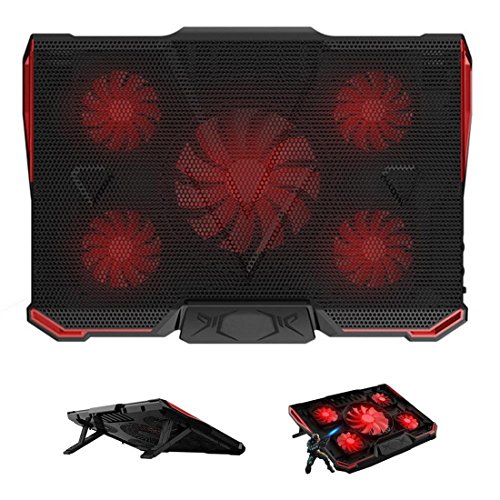 -. Title : EletecPro Laptop Cooler External Cooling Fans Pad For 12"-17" Laptops, 5 Quiet Fans with Red LED Lights, Dual USB 2 Ports, Adjustable Stand Mount Model
