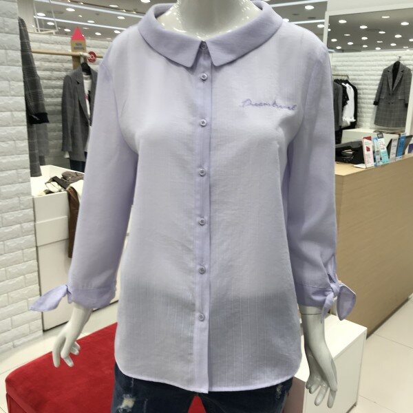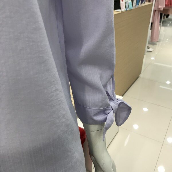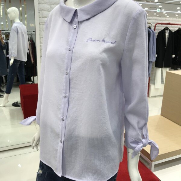 라운드목선이 깔끔한 블라우스입니다살짝오버핏이라 귀엽게입기좋아요소매리본장식이 있습니다