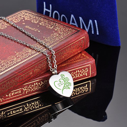 -. Title : HooAMI Always in My Heart Urn Jewelry Cremation Ashes Necklace,Silver Green