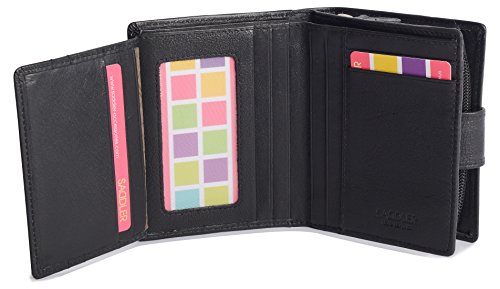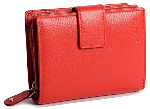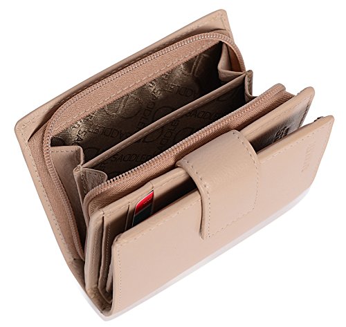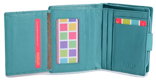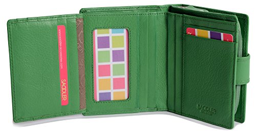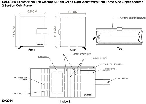 Binding : Apparel Product Description SADDLER is the quintessentially British Leather Goods Brand that traces its heritage back more than 25 years. Every SADDLER piece combines the finest leathers handcrafted by experienced artisans employing traditional leather skills with creative design and eye-catching colour that makes any SADDLER piece an ideal real leather gift. The SADDLER Essence Collection bears all the hallmarks of excellence across a comprehensive range of ladies accessories destined to impress those with the most discerning tastes. The outer flap of each piece is distinctively embossed with the SADDLER logo and the interior is lined with SADDLER monogrammed woven jacquard lining. High quality fittings are used to enhance the natural beauty of these full grain cowhide wallets and, as a finishing touch, the Saddler Essence range is delivered to you in its own innovative gift packaging. The ladies 4 1/2" bi-fold wallet has a secure tab closure that opens to reveal a full-length note section, a flap extension wing with 3 credit card slots and two further slots to the rear. On the inner an ID/photo window pocket and an additional 5 credit card slots plus 2 deep fully lined side slip in pockets for secure storage complete the internal storage. On the back is a zipper that opens along three sides of the wallet to reveal a 2-section coin purse. The interior is lined with Saddler monogrammed lining and the Saddler logo is discreetly embossed on the front flap and inside the wallet. Approximate size: 4 1/2" x 4" x 1 1/2" when closed and without packaging; Approximately 4 ounces when empty 0