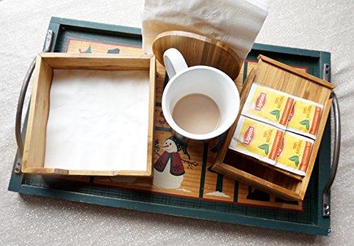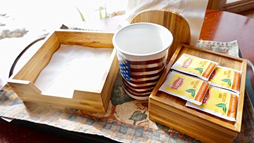 Classic 100% Bamboo Kitchen Accessories Combo Set: Tea Bag Organizer Box, Square Napkin Holder, Standing Napkin Holder, (3)