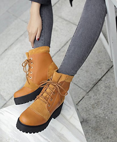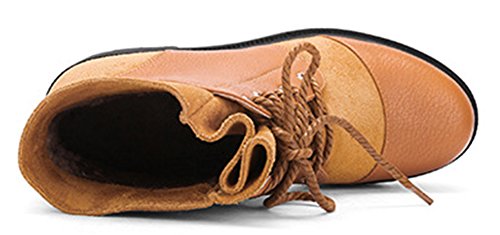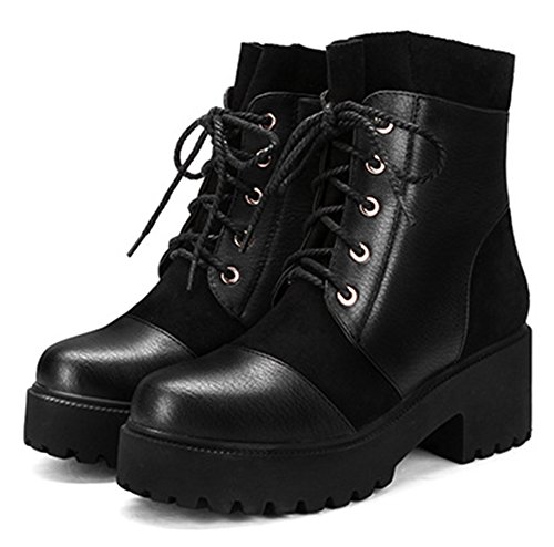 Binding : Apparel Product Description Winter is coming! Do you want a pair of boots both of fashion and warm? This pair of snow boots is a perfect choice. This lovely shoes features lace up closure and round toe. With their splicing materials in the upper, you will look more elegant and cute. The faux fur lined will warm you all winter. The sole is made of good rubber. You will feel comfy in their soft bottom. The heels measure 2.2 inches. You will feel comfortable in their wedge heels. So you will not feel tired even walking all day long. They are of high quality and durable. Just pick them to show your beauty. 0