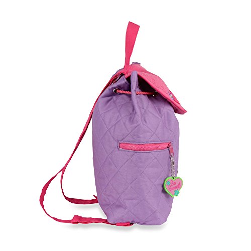 Product Description Whether going to daycare, preschool or on a day trip this cute backpack makes it easy to pack up and go. It features a roomy interior with adjustable straps, and carrying handle. Fun coordinating zipper pull. Measures approx. 12" X 13.5" X 4".