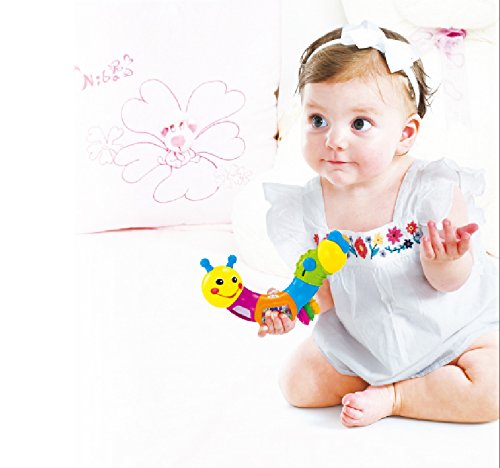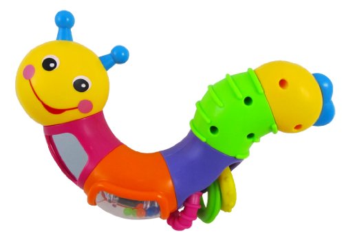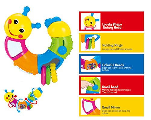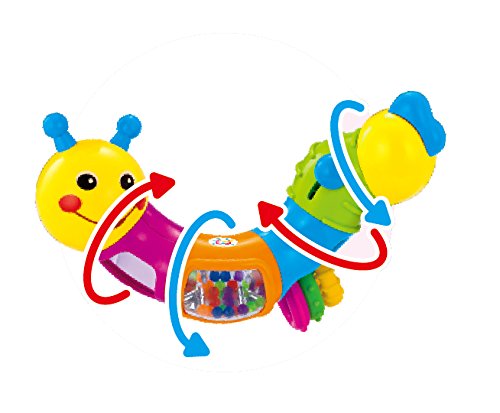 Caterpillar twists and rattles! Your child will love this Caterpillar. It has an adorable smiley face and cute tail. The caterpillar's body segments can be turned separately with click sounds, and each segment has a unique function.