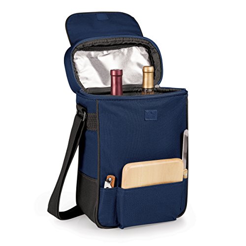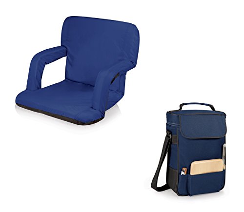 Product Description Perfect for stadium seating, camping, outdoor concerts, sporting events, days at the beach or the game room, this original design Picnic Time Ventura portable reclining stadium seat features a durable polyester-covered padded cushion mounted on a sturdy steel frame. Picnic Time designed the Ventura seat with comfort in mind, and the high-density internal PU foam offers the perfect firmness to prevent aches in your back and buns. The Ventura seat adjusts simply by folding the top and the bottom toward one another into six assorted positions for custom relaxation. The integrated armrests automatically fold as you change the recliner positioning, and if you prefer a wider seat over armrests, they can be inverted to increase the width of the seat to 20 inches. The adjustable backpack-style shoulder straps allow for easy transport on your outing, and a small zippered pocket in the back will house your keys, cell phone and other small incidentals. The Ventura seat folds flat for easy storage and transport. Measures 32 by 20 by 2 inches when folded flat. Perfect for picnics, concerts, or travel, this insulated Picnic Time Duet tote features two compartments for wine bottles inside and a handy exterior pocket for storing the picnic tools included. The adjustable shoulder strap makes it convenient and easy to carry, and the Duet comes in an assortment of trendy color combinations, all in sturdy polyester canvas. Components included: one waiter's style stainless steel corkscrew, one hardwood cutting board, and one stainless steel cheese knife with wooden handle. Convenient and practical, the Duet is perfect for wine and cheese lovers. A wonderful gift idea. 0