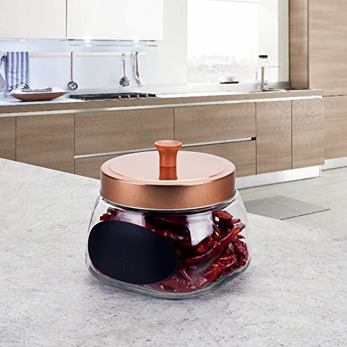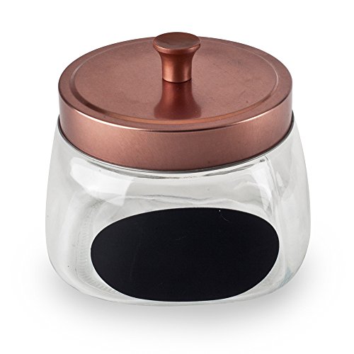 Housewares International 33692 Copper Lid & Black Chalkboard Label Round Glass Jar, 37 oz, Clear
