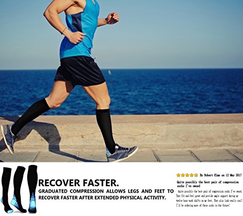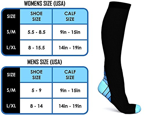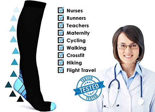 Compression Socks for Men & Women, BEST Graduated Athletic Fit for Running, Nurses, Shin Splints, Flight Travel, & Maternity Pregnancy (Black & Blue S/M...