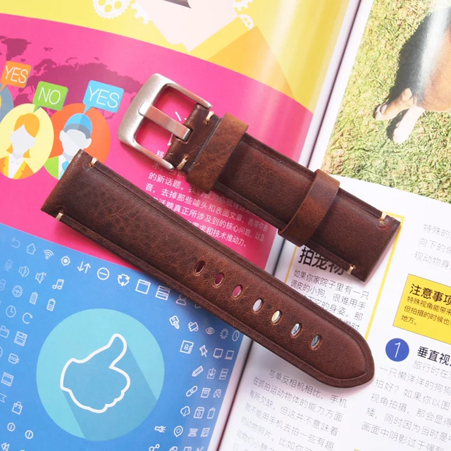 이탈리아어 가죽 시계 스트랩 22 미리메터 시계 밴드 브라운 손목 시계 밴드 스트랩 스테인레스 스틸 버클