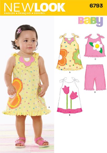 -. Feature : Babies Separates in size A (NB-S-M-L), New Look Pattern #6793 / Number of looks included: 4 / Designed in UK, Manufactured in USA / Instructions are written in English, Spanish, and French / Sested fabrics: Cotton and Cotton Blends, Gingham, Laundered Cottons, Baby Cord, Broadcloth, Chambray, Pique, Poplin, Cotton Interlock, Jerseys, Soft Lightweight Linen and Linen Blends; not suitable for sleepwear