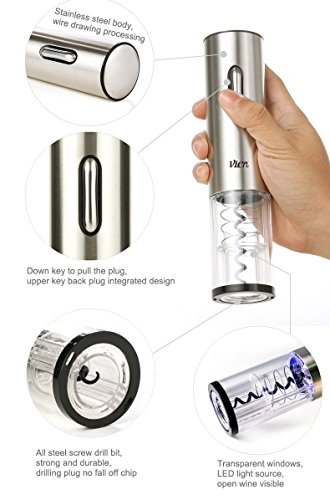 • Cordless electric bottle opener removes the cork in seconds. Built-in rechargeable battery, opens up to 30 bottles on a single charge; simple push-button operation