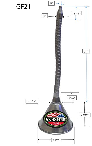 Behrens GF21 Galvanized Steel 14" Flex Spout Funnel with Screen, 1 quart