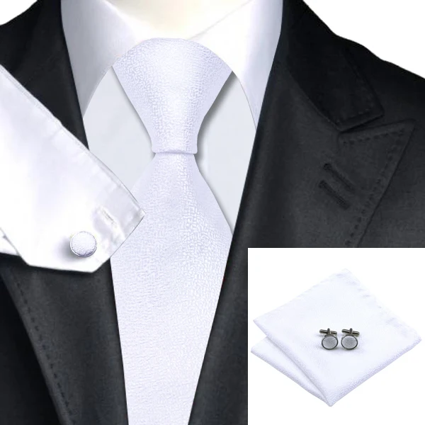 LS-1105 남성 넥타이 브랜드 클래식 참신 자카드 짠 100% 실크 넥타이 타이 + 손수건 + 커프스 세트 웨딩 파티 비즈니스