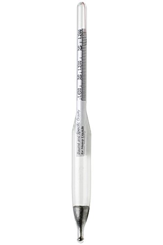 - Length: 165 mm (6.5”); Sp. gr. Range: 1.000/2.000; Baume Range: 0/70