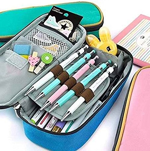 LORJE Big Capacity Multifunction Canvas Pencil Case Bag Storage Organizer Pencil Case- ( Pink)