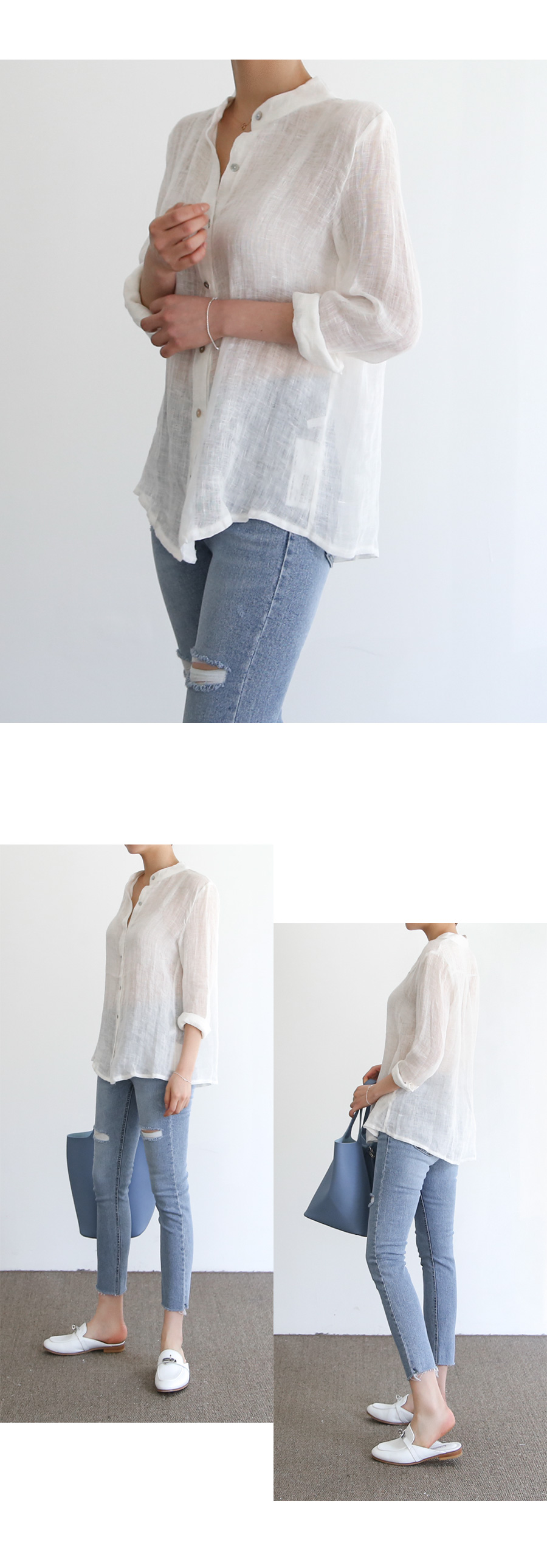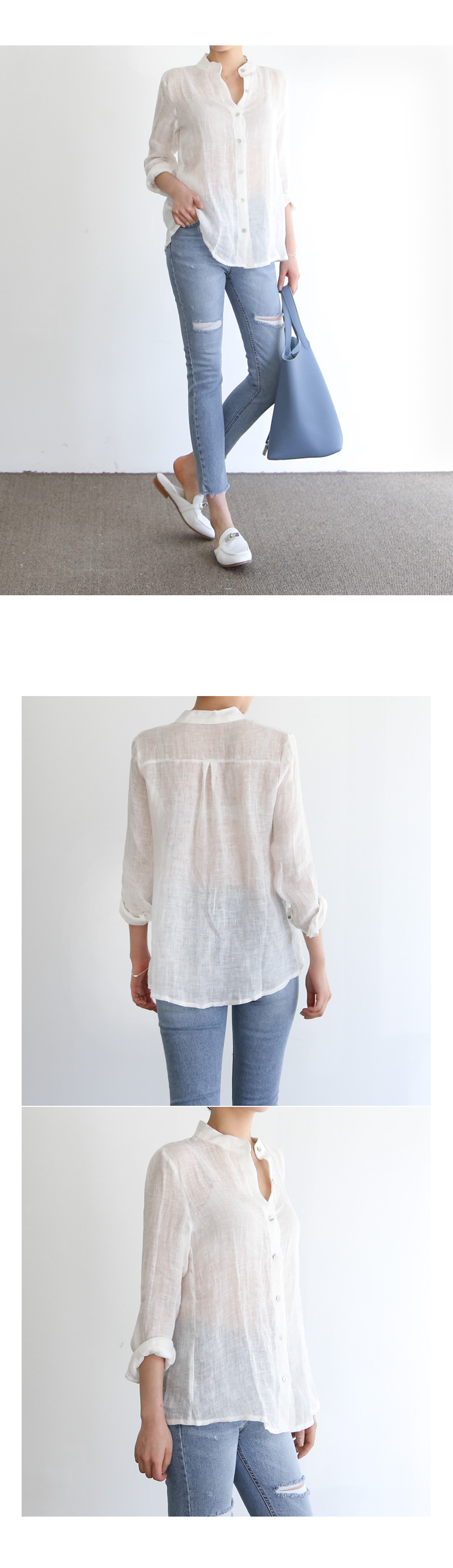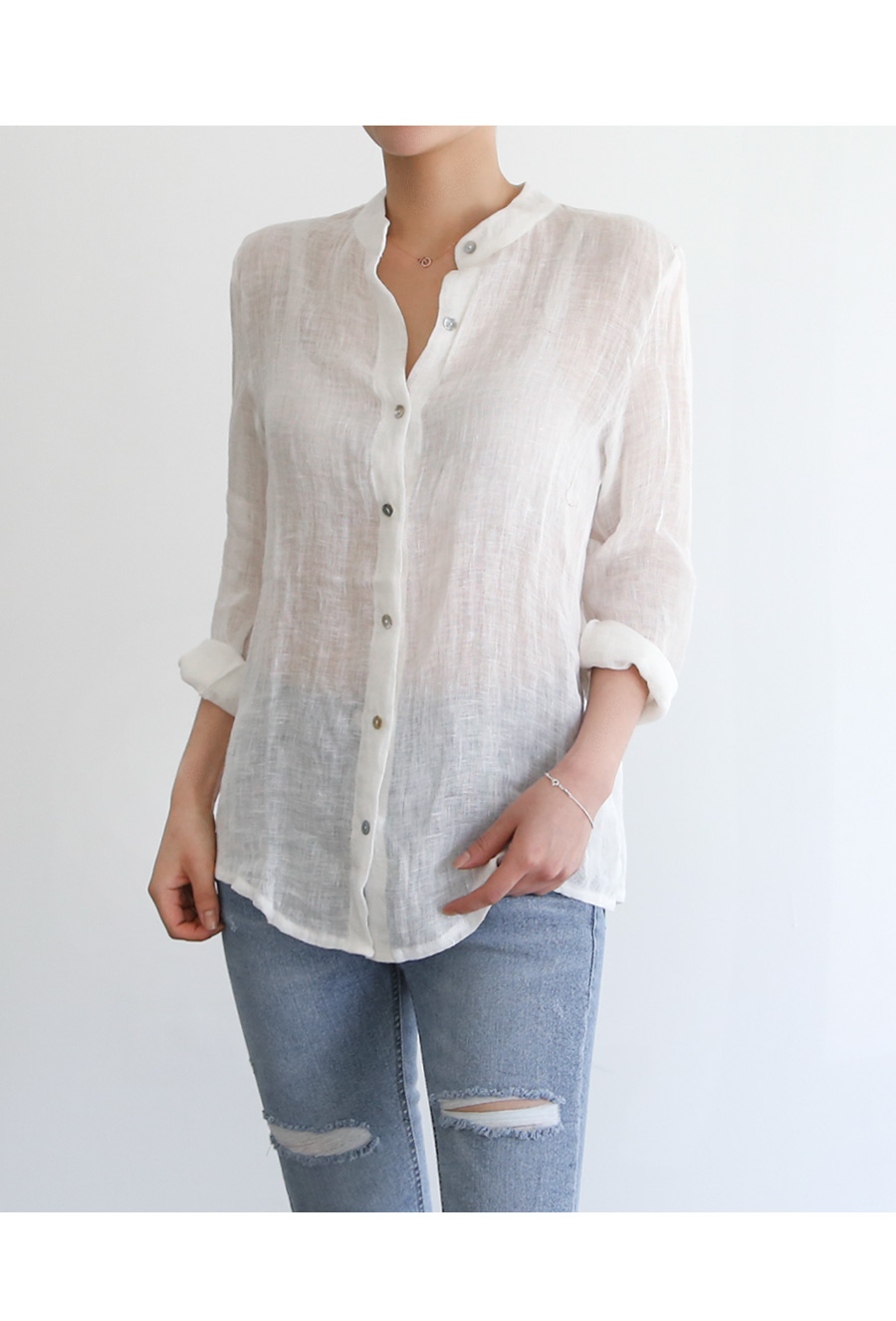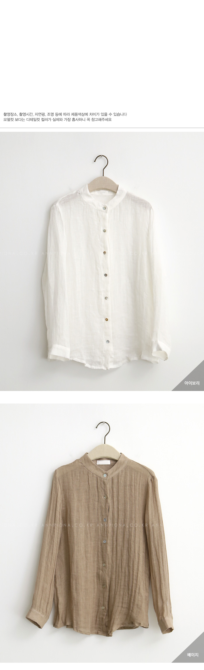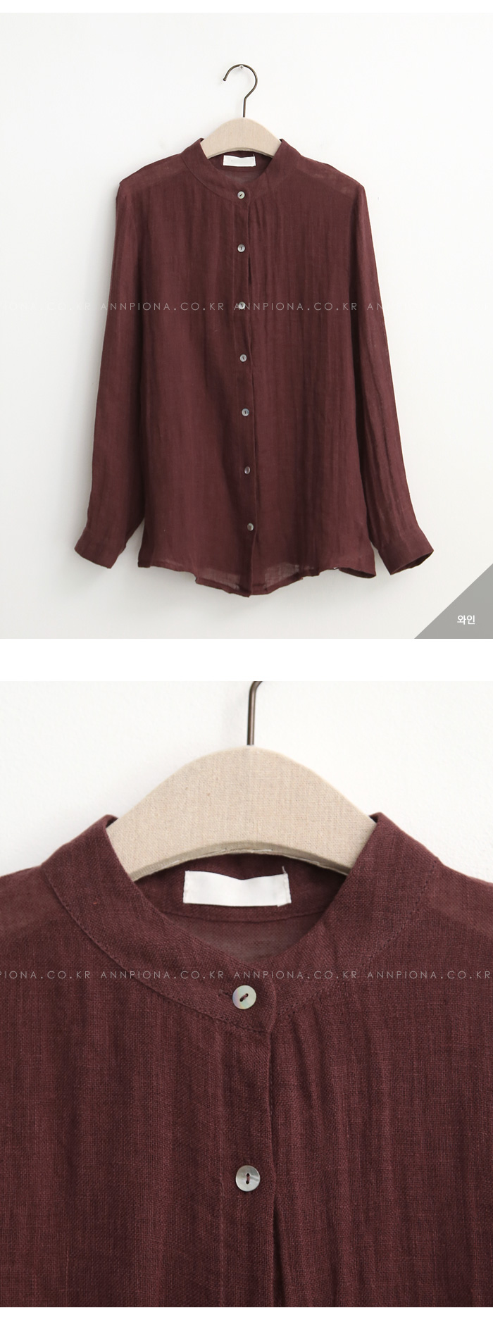 깔끔한 차이나 넥카라의 린넨셔츠입니다